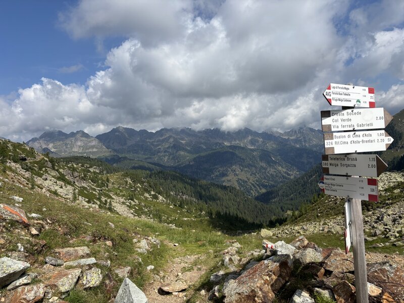 heen: Malga Sorgazza - Punta Socede - Cima d'Asta, 6-7 uur